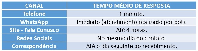 Manter registros das manifestações para consultas e melhoria dos processos, disponibilizando-os ao usuário e para fiscalizações ou questionamentos dos órgãos reguladores, bem como gerenciando o tempo de resposta e sua conclusão. Transformar em indicador o tempo médio de resposta das manifestações, publicando o resultado.